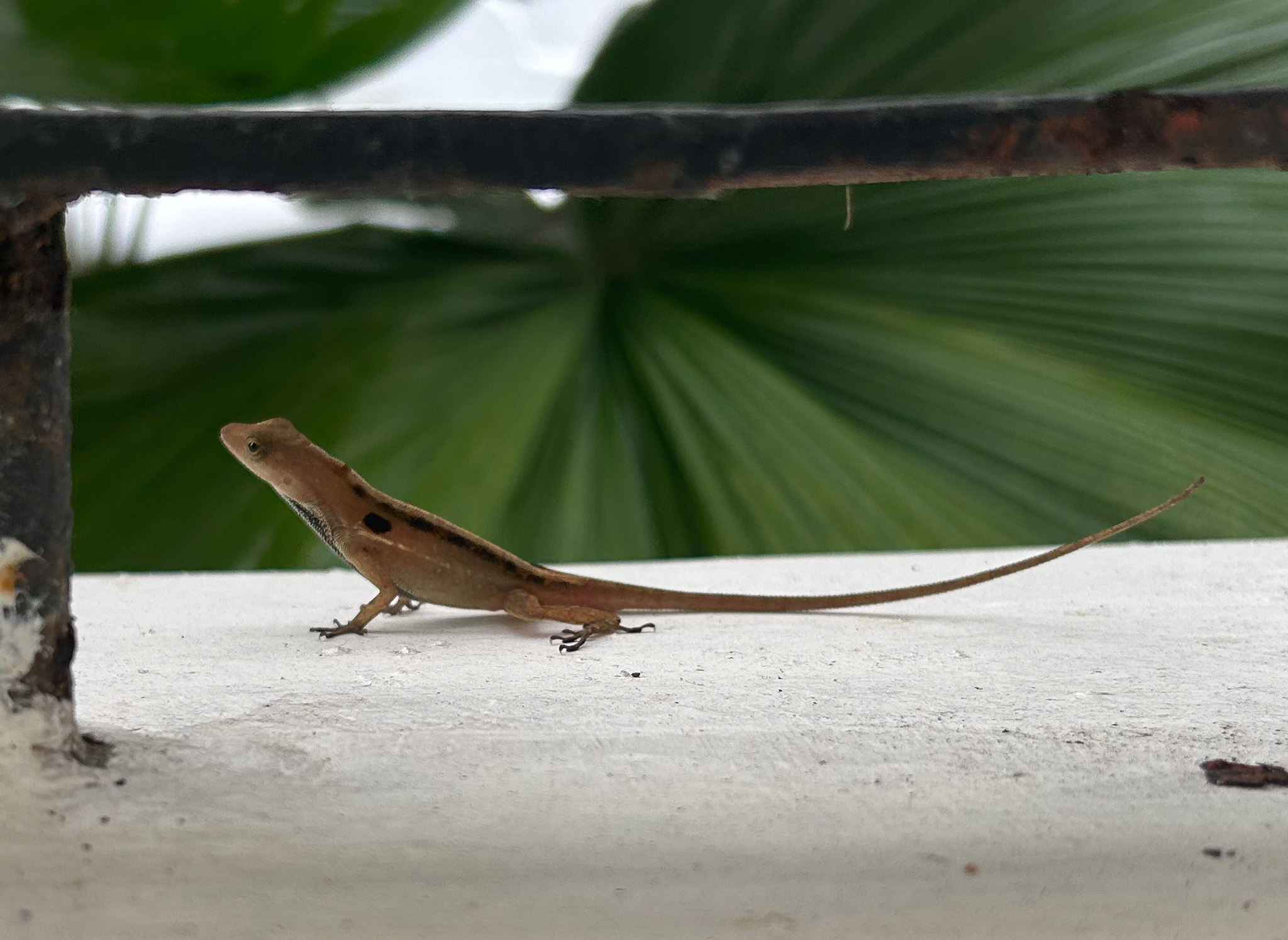 In the beginning of the trip, I thought I wasn't going to see monkeys! Well, you can see how wrong i was. Multiple mornings I woke up to them banging on the door and trying to unlock it so they could get in and steal all out stuff. This one was on the balcony doing just that, but ran away when dad came to the window.